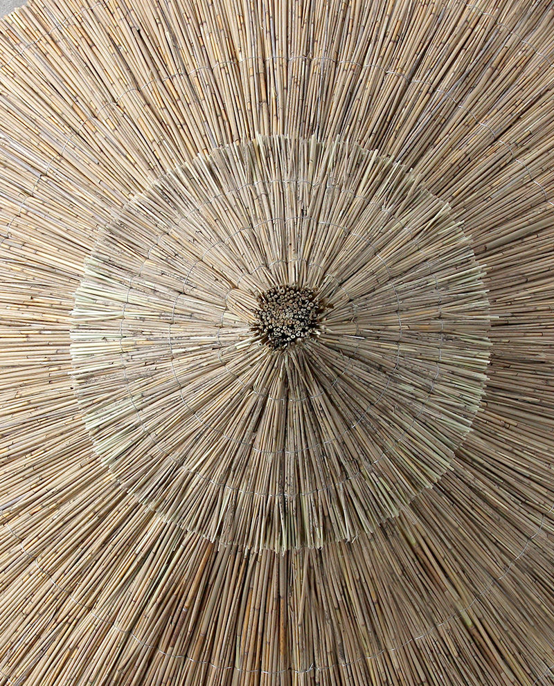 ΔΕΣΙΜΑΤΑ:Μικρά δεματάκια καλαμιού δένονται πάνω στον σκελετό και σε κάθε ακτίνα του, με σύρμα γαλβανιζέ σε πέντε (5) σημεία στην ομπρέλα Φ. 2,10 και επτά (7) σημεία στην ομπρέλα Φ. 2,40.