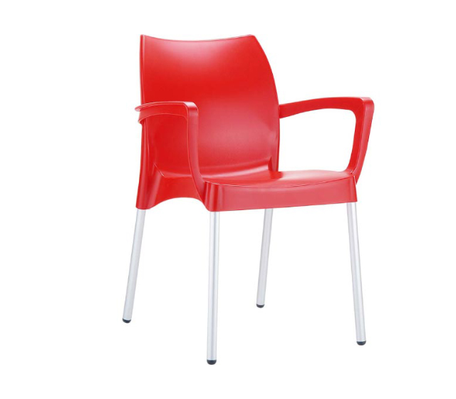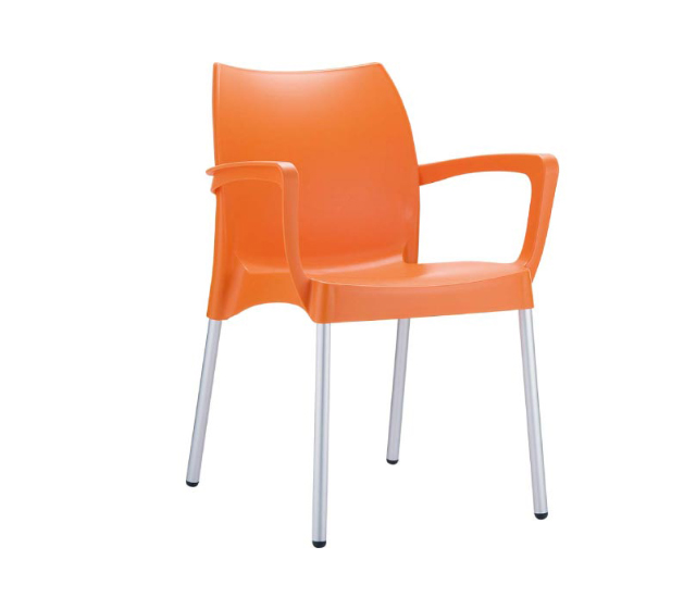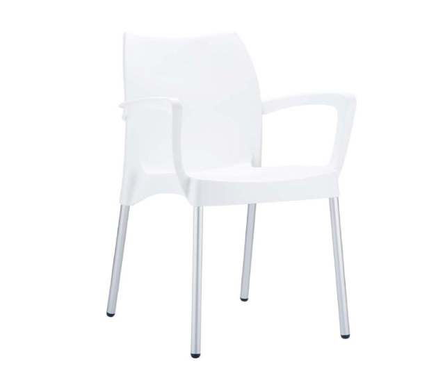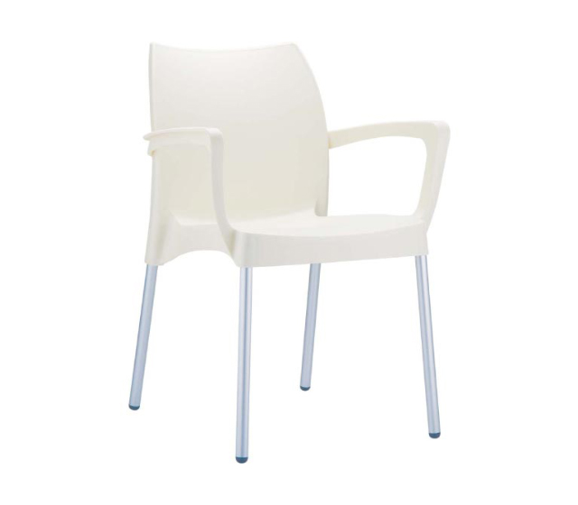 DOLCE πολυθρόνα του οίκου Siesta. Κατασκευσμένη από πολυπροπυλένιο και ανοδιωμένα πόδια αλουμινίου Φ25. Είναι στοιβαζόμενη, κατάλληλη για εσωτερική και εξωτερική χρήση.