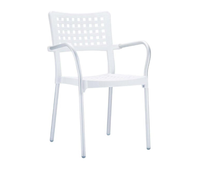 Πολυθρόνα GALA του οίκου Siesta ,κατασκευασμένη από πολυπροπυλένιο και πόδια από ανοδειωμένο αλουμίνιο Φ25mm,για απόλυτη αντοχή στον χρόνο.Κατάλληλη για εσωτερική και εξωτερική χρήση,στοιβαζόμενη σε πολλά χρώματα,ιδανική για επαγγελματική χρήση.Πιστοποιημένο προιόν απο τον Ιταλικό οίκο CATAS.