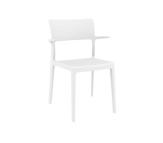 Πολυθρόνα PLUS του οίκου Siesta, με μοντέρνο σχεδιασμό. Κατασκευασμένη από πολυπροπυλένιο με 20% fiber glass για απόλυτη αντοχή στον χρόνο. Κατάλληλη για εσωτερική και εξωτερική χρήση,μπορείτε να στηρίξετε τα μπράτσα της πολυθρόνας στο τραπέζι για εύκολο καθάρισμα του δαπέδου,είναι στοιβαζόμενη για εύκολη αποθήκευση,σε πολλά χρώματα,ιδανική επιλογή και για επαγγελματικούς χώρους. Πιστοποιημένο προϊόν από τον Ιταλικό οίκο CATAS.