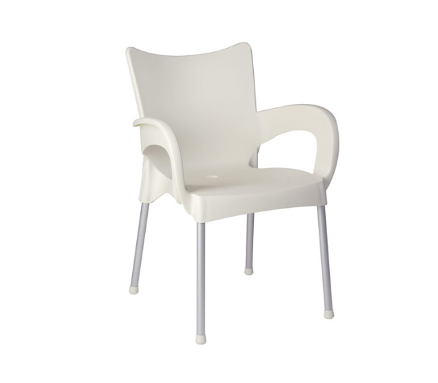 Πολυθρόνα ROMEO του οίκου Siesta, κατασκευασμένη από πολυπροπυλένιο ενισχυμένο με 20% fiber glass και πόδια από ανοδειωμένο αλουμίνιο Φ25mm,για απόλυτη αντοχή στον χρόνο.Κατάλληλη για εσωτερική και εξωτερική χρήση,στοιβαζόμενη σε πολλά χρώματα,ιδανική για επαγγελματική χρήση.