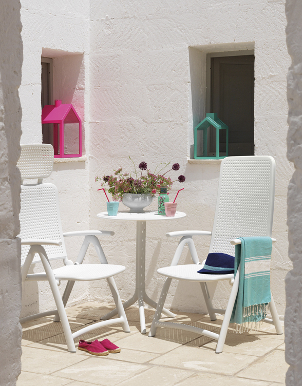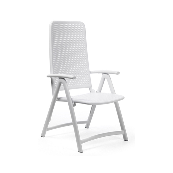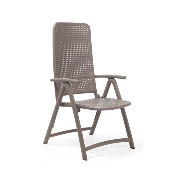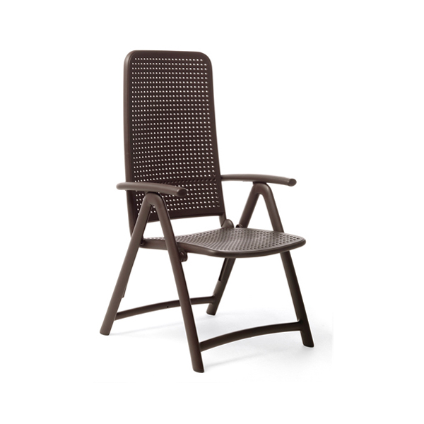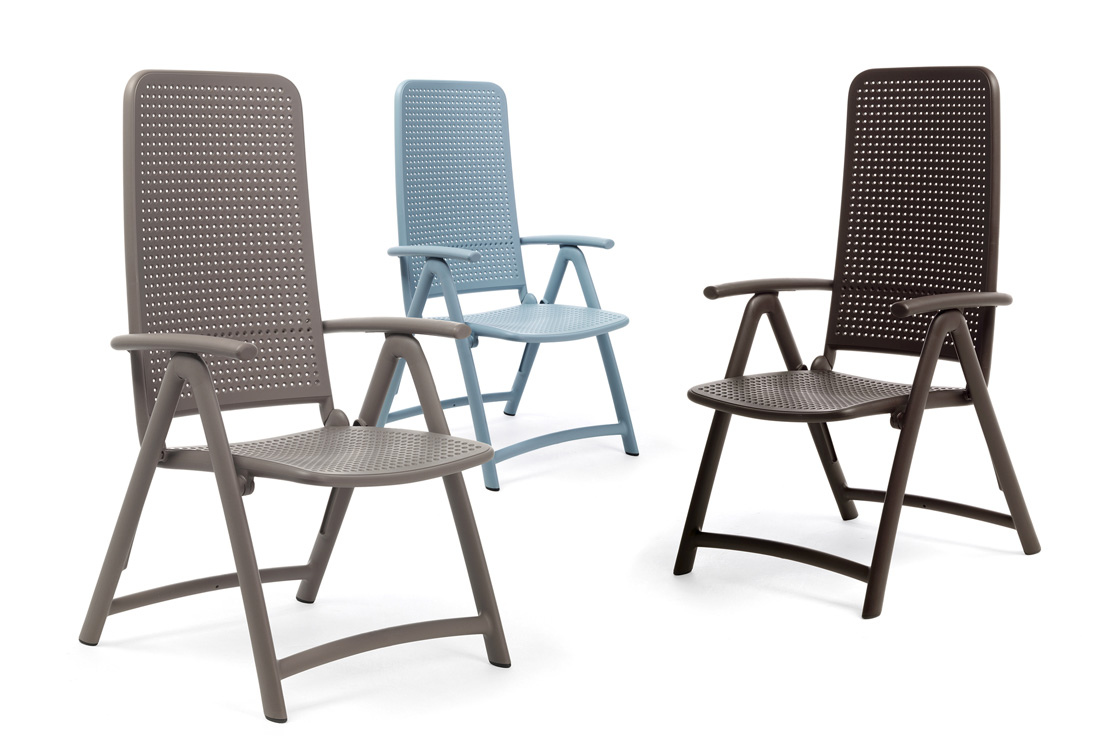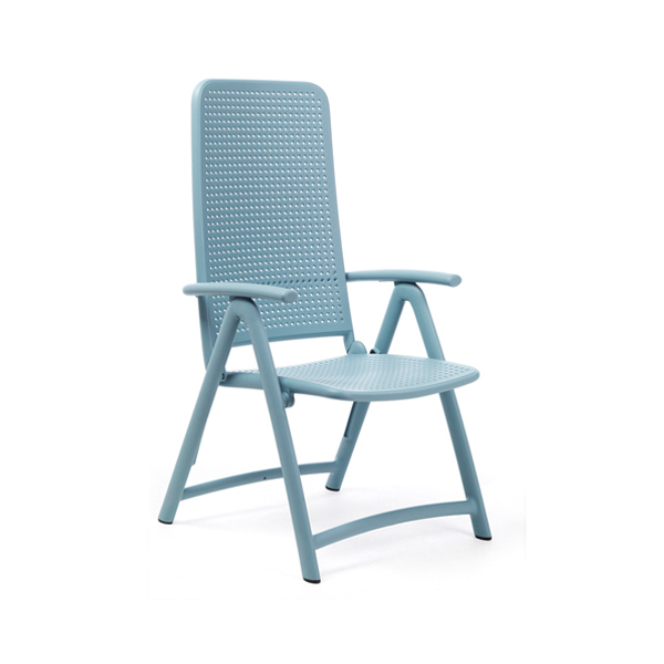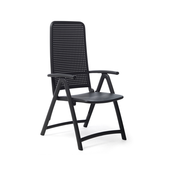 Folding armchair with high backrest adjustable in 4 positions, in fiberglass polypropylene treated anti-UV and colored in mass. Equipped with non-slip feet. Matt finish