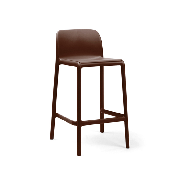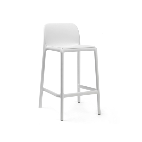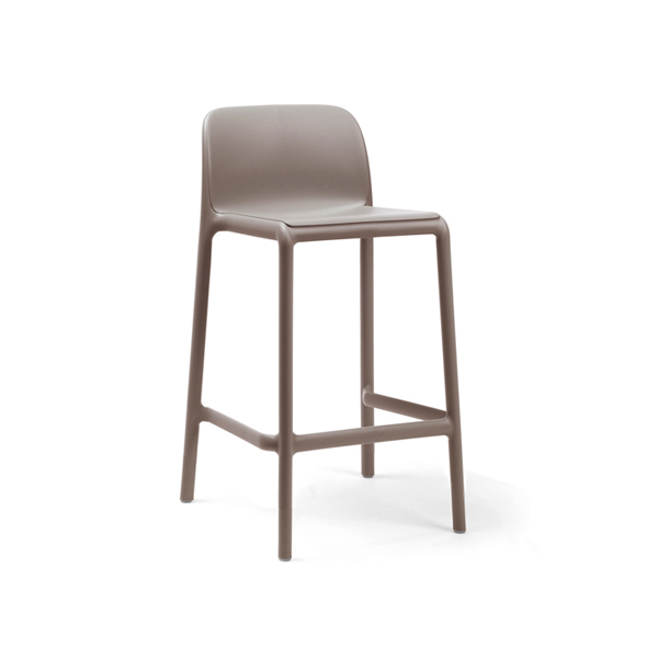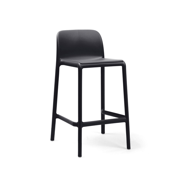 Stackable stool, seat height 65 cm, made of uniformly colored fiberglass polypropylene resins with uv additives. With non-slip feet and matt finish.