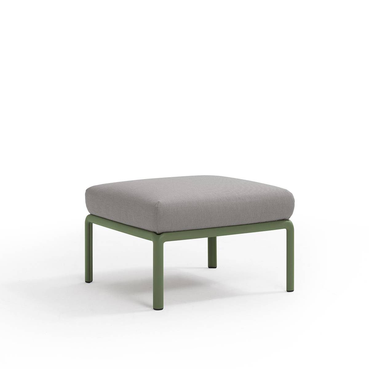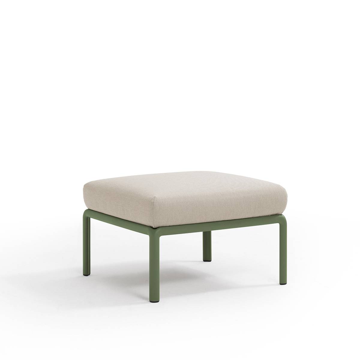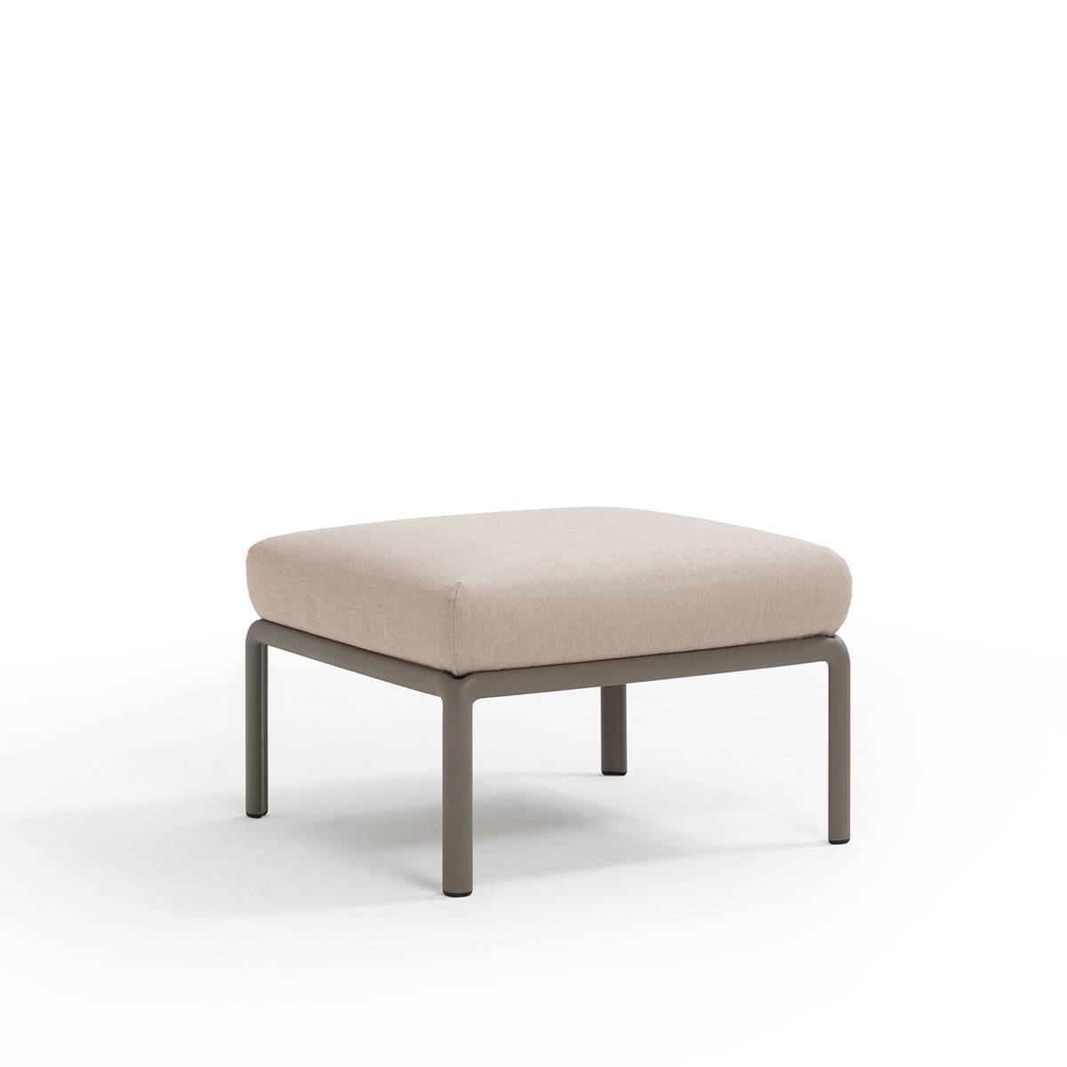 Original pouf in fiberglass resin and upholstered. Can be purchased individually or can be designed as a compositional element in larger sets provided by the Komodo modular seating collection.