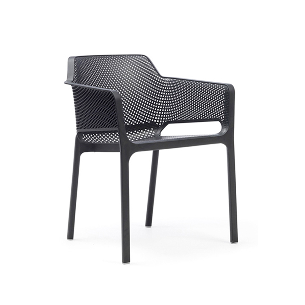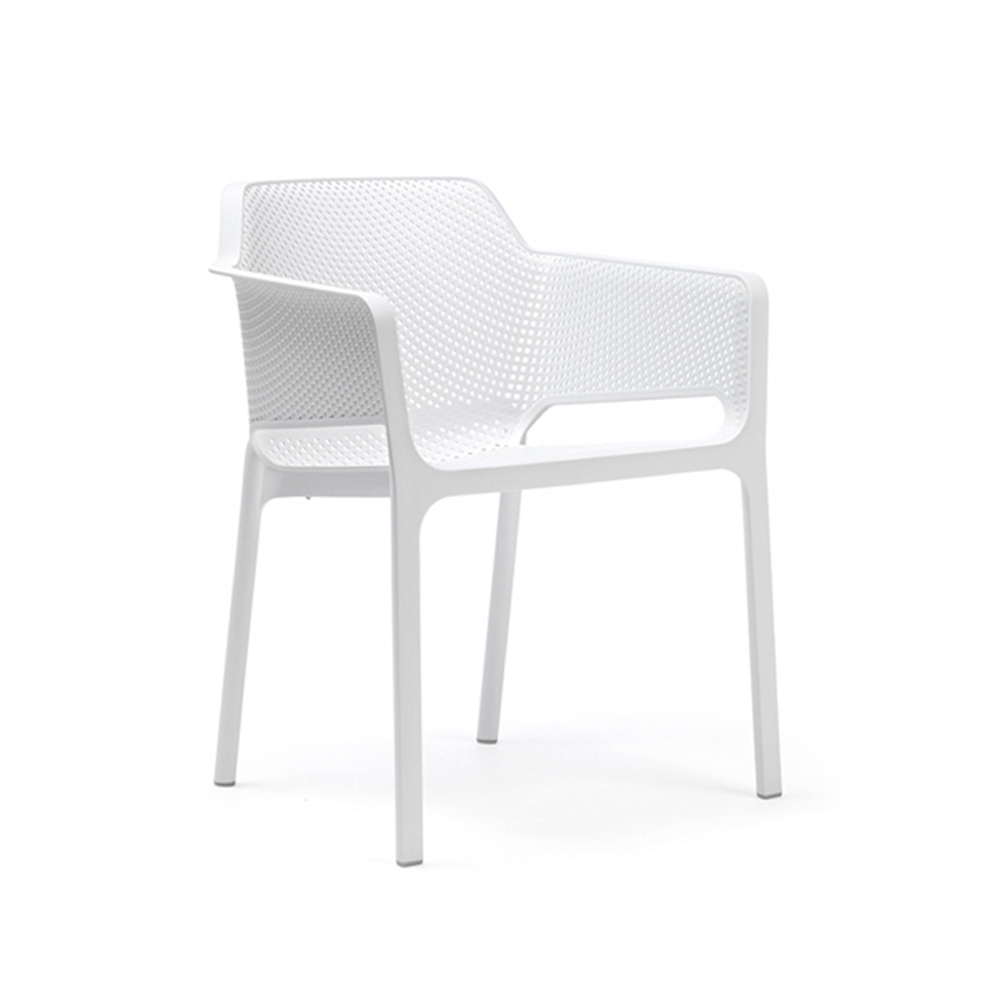 Stackable armchair in fiberglass polypropylene treated anti-UV and colored in mass. Equipped with non-slip feet. Matt finish