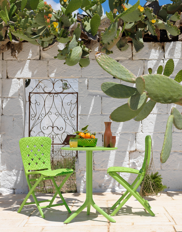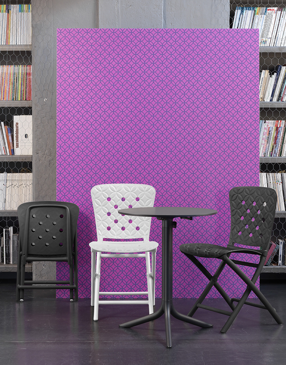 Folding chair in fiberglass polypropylene treated anti-UV and colored in mass. Equipped with non-slip feet. Matt finish